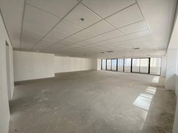 Salas comerciais com 211m² - vão livre, 2 banheiros amplos (masculino e feminino), baía de apoio (copa) e ponto adicional de água e esgoto na outra extremidade das salas, além de 6 vagas de garagem.