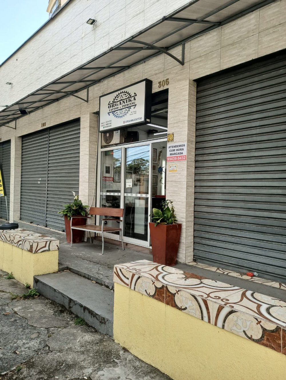 São 2 lojas com 45m² com 1 banheiro em cada loja, piso des cerâmica, energia 110/220V e pia.